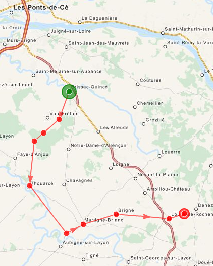 ermettre de faire étape au monastère des bénédictines de Martigné-Briand, un tracé part de Brissac au travers de la forêt à Vauchrétien, et rejoint la voie des Plantagenet à Rochemenier.
